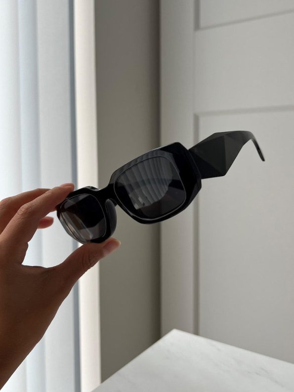 Classic chunky Trendy geometric all black Sunglasses black frame for woman